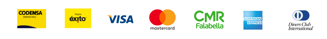 Aceptamos tarjetas de crédito, débito, pagos online, transferencias y consignación bancaria.